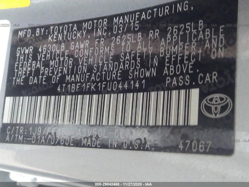 2015 TOYOTA CAMRY Front Wheel Drive