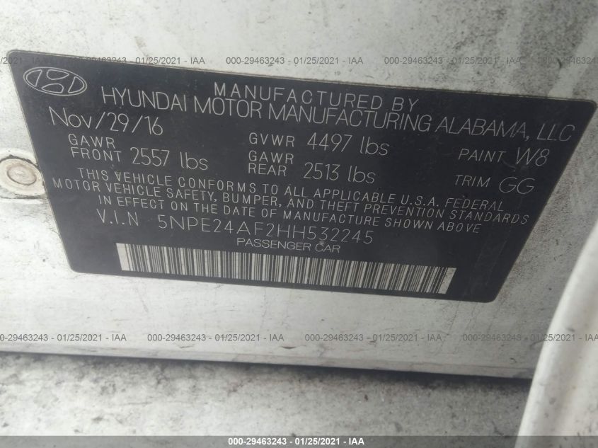 2017 HYUNDAI SONATA Front Wheel Drive