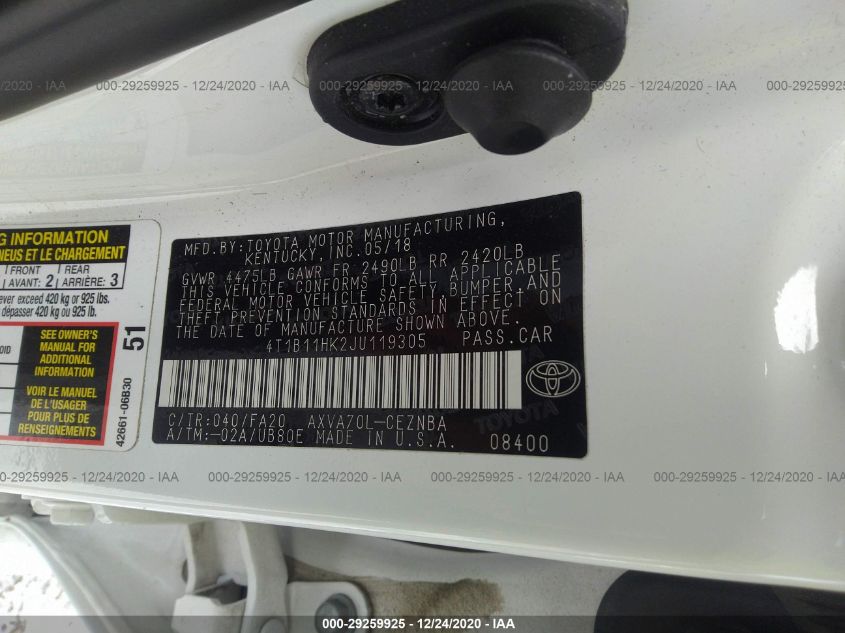 2018 TOYOTA CAMRY Front Wheel Drive