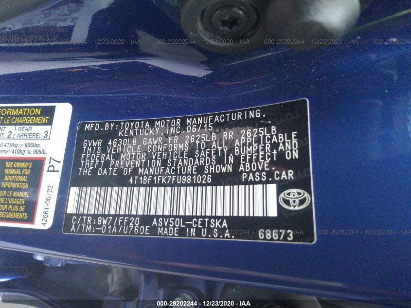 2015 TOYOTA CAMRY Front Wheel Drive
