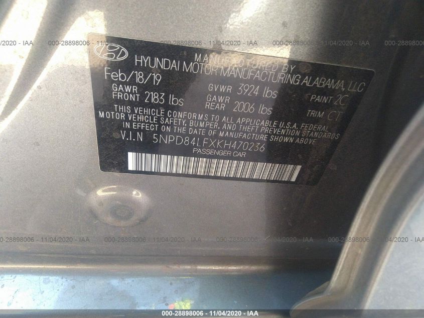 2019 HYUNDAI ELANTRA Front Wheel Drive