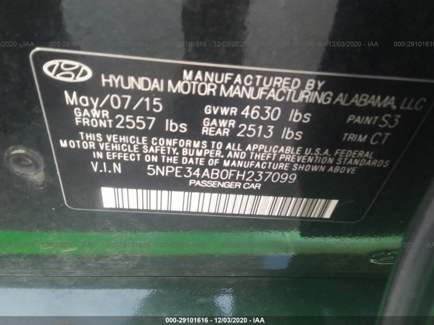 2015 HYUNDAI SONATA Front Wheel Drive