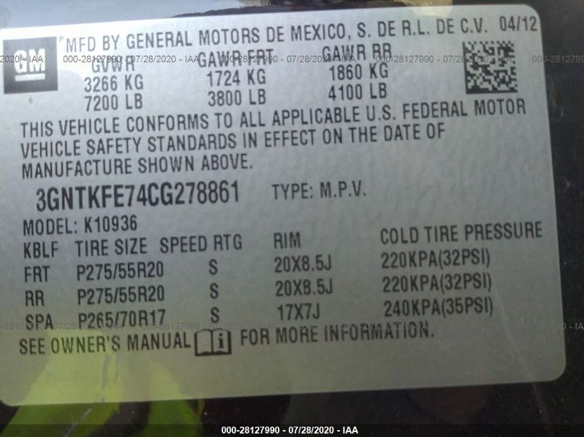 2012 CHEVROLET AVALANCHE 4X4 Drive