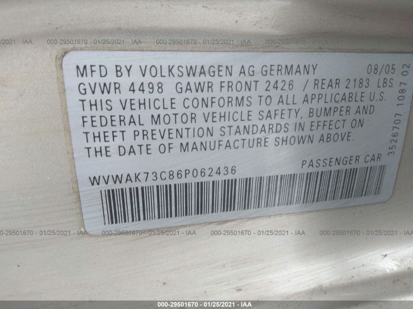 2006 VOLKSWAGEN PASSAT SEDAN Front Wheel Drive