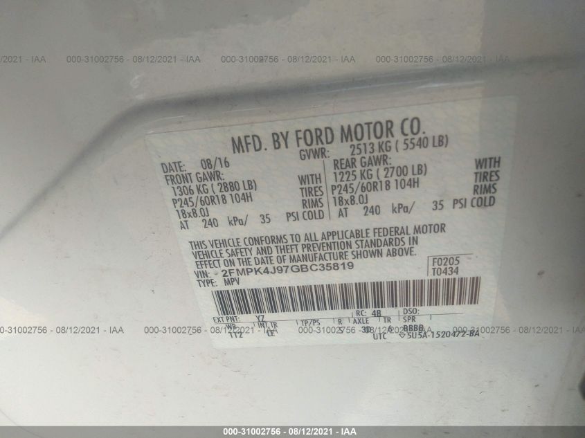 2016 FORD EDGE All Wheel Drive