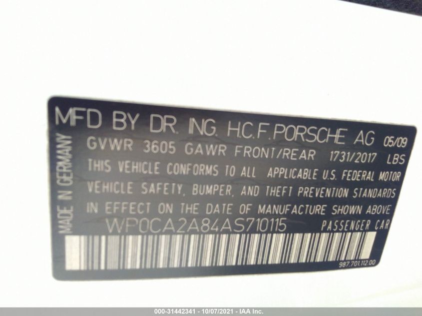 VIN WP0CA2A84AS710115