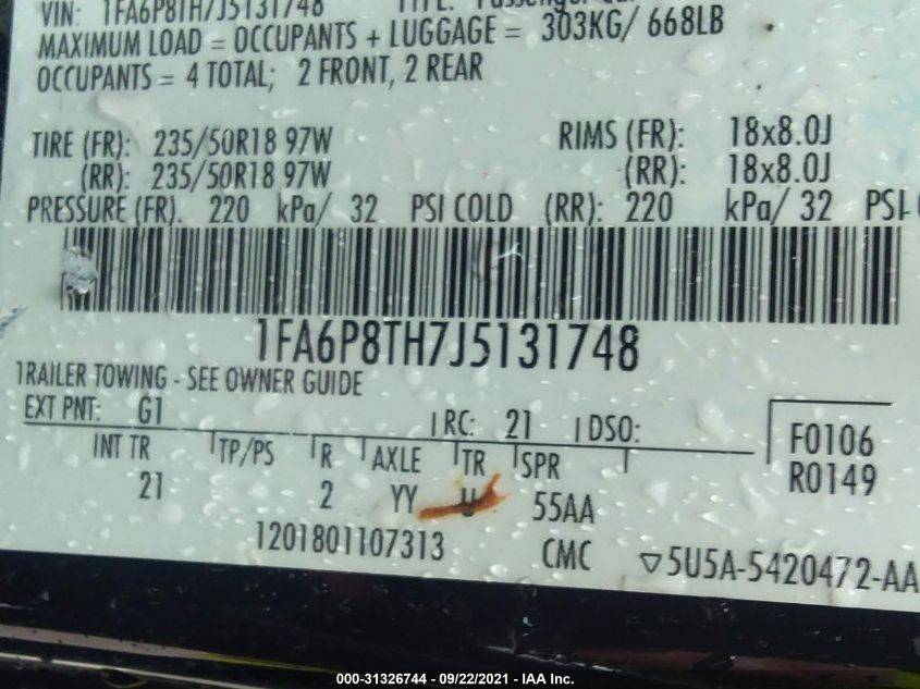2018 FORD MUSTANG Rear Wheel Drive