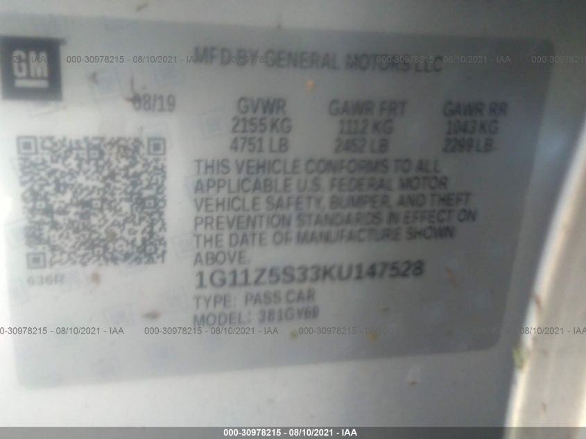 VIN 1G11Z5S33KU147528