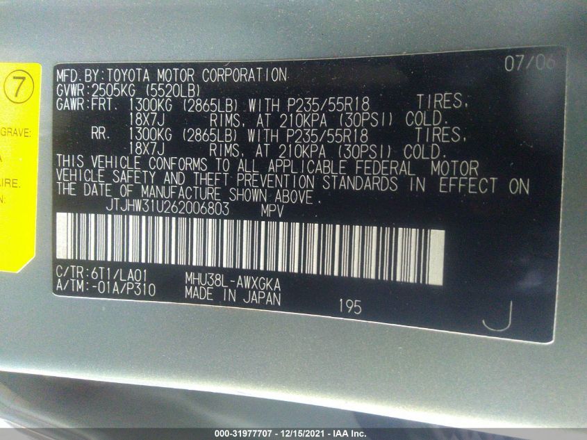 2006 LEXUS RX 400H All Wheel Drive