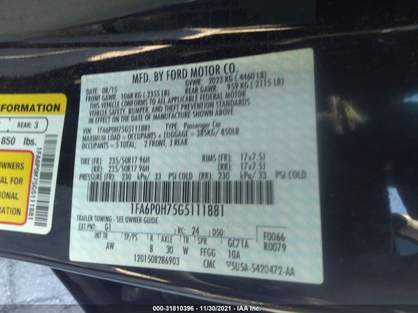 2016 FORD FUSION Front Wheel Drive
