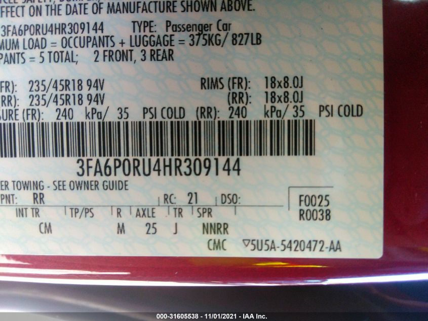 2017 FORD FUSION Front Wheel Drive
