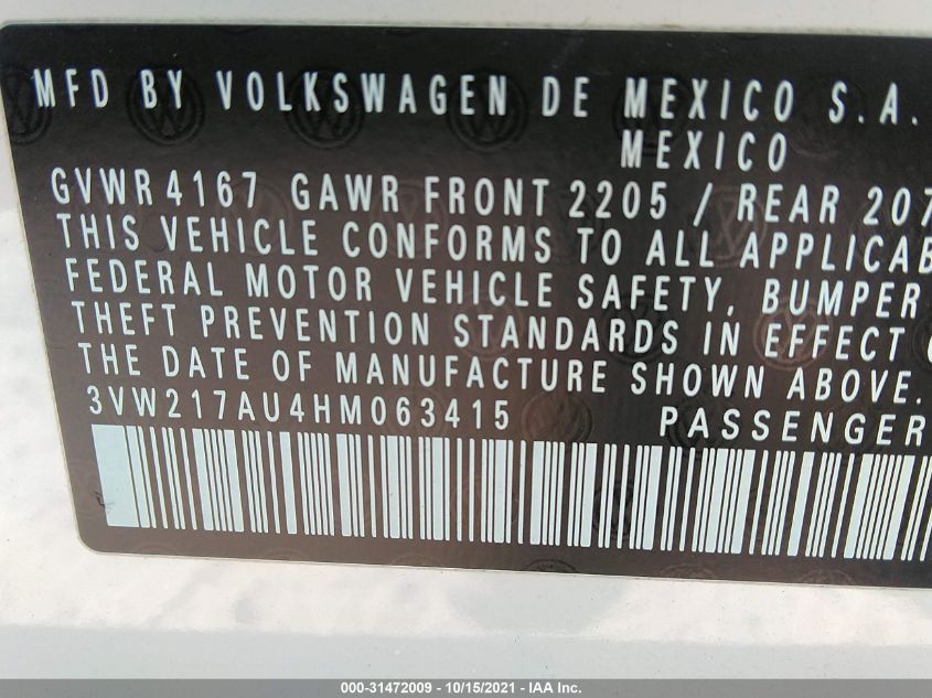 2017 VOLKSWAGEN GOLF Front Wheel Drive