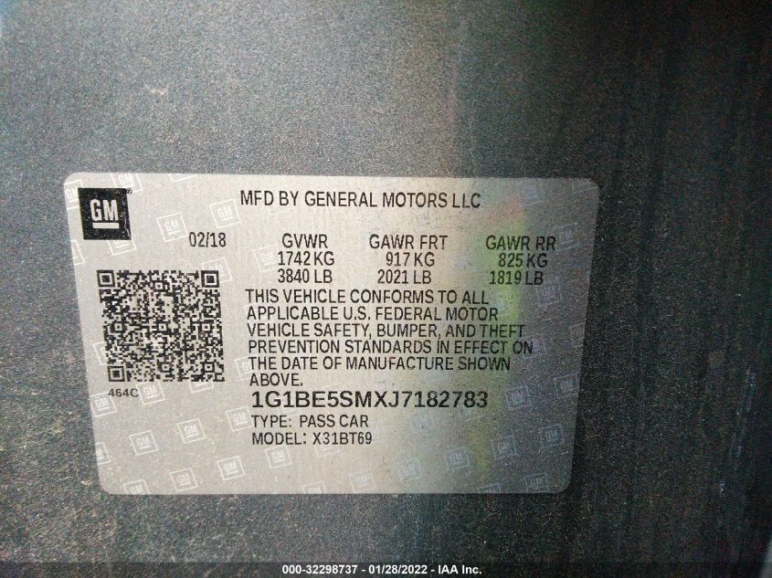 2018 CHEVROLET CRUZE Front Wheel Drive