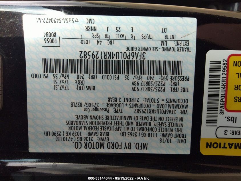 2019 FORD FUSION HYBRID Front Wheel Drive