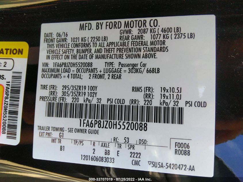 2017 FORD MUSTANG Rear Wheel Drive