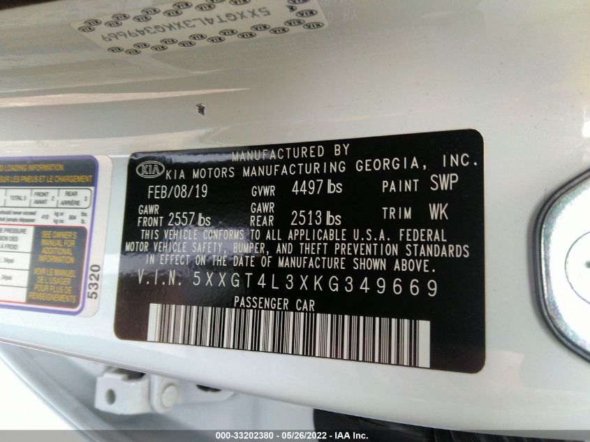 VIN 5XXGT4L3XKG349669